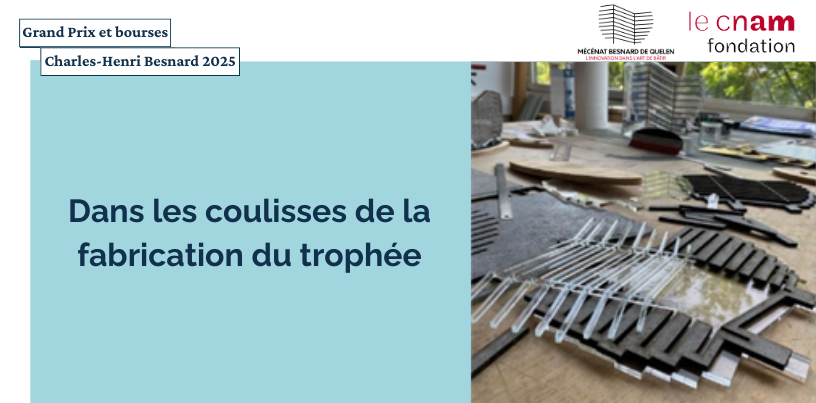 Dans les coulisses de la création du trophée 2025 du Grand Prix Charles-Henri Besnard, innover dans l’art de bâtir : les compétences professionnelles des apprentis du Cnam mises à l’honneur18 juin 2025Le 2 juin 2025, la Fondation du Cnam a célébré l’innovation dans l’art du bâtir en remettant le Grand Prix et les Bourses Charles Henri Besnard au Conservatoire national des arts et métiers, en présence de Bénédicte Fauvarque-Cosson, Laure Lavorel et Jean-Sébastien Villefort. Le Grand Prix 2025 a été décerné à Marc Dib, fondateur de NEOLITIK, qui a reçu un trophée symbolisant la rencontre des talents et savoir-faire au Cnam. -